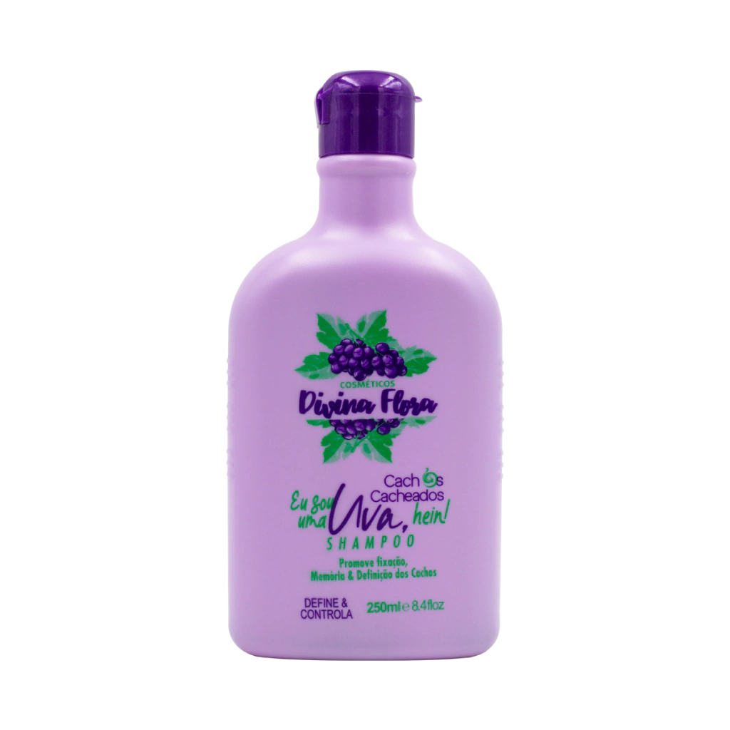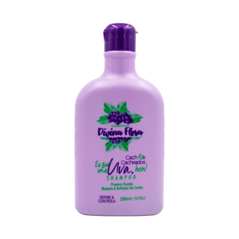 Descubra a fórmula revitalizante do Shampoo Cachos Eu Sou Uma Uva, Hein! Divina Flora. Com 250 ml de puro cuidado, este shampoo é ideal para quem busca hidratação profunda e brilho natural para os cabelos.